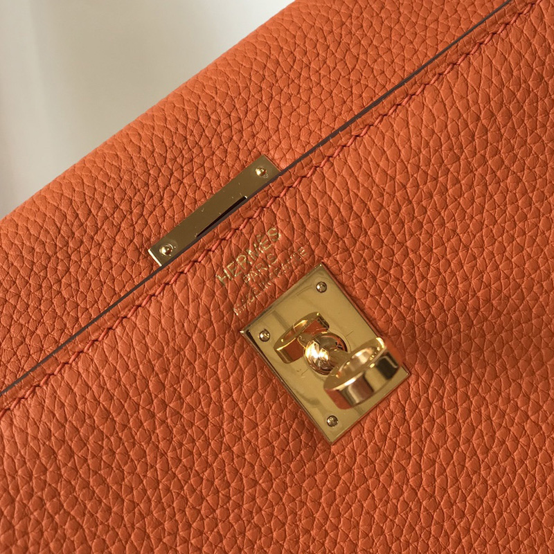 Hermes Kelly 25cm Bag in Clemence Leather Orange GHW