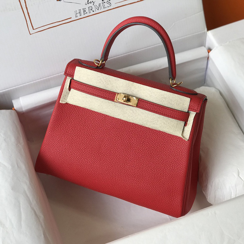 Reviews Over Hermes Kelly 25cm Bag in Clemence Leather Red GHW