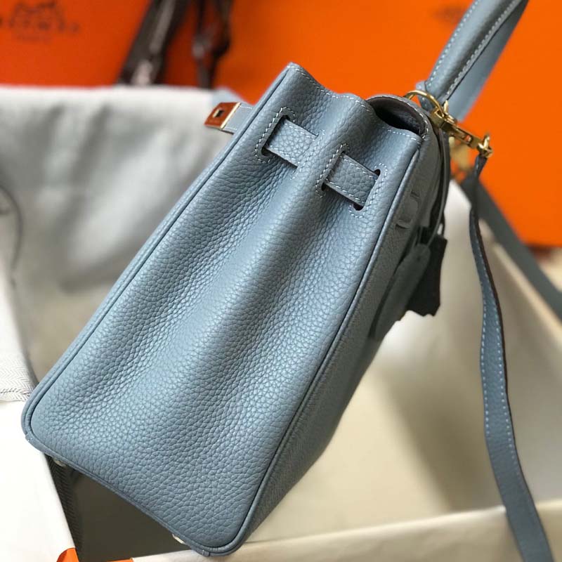 Hermes Kelly 32cm Bag in Clemence Leather Blue Jean