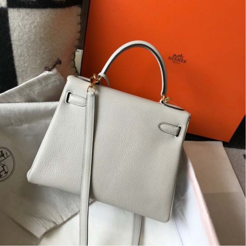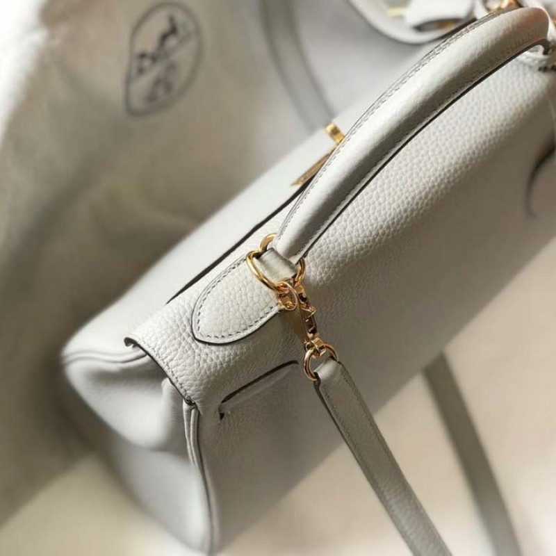 Reviews Over Hermes Kelly 32cm Bag in Clemence Leather Craie