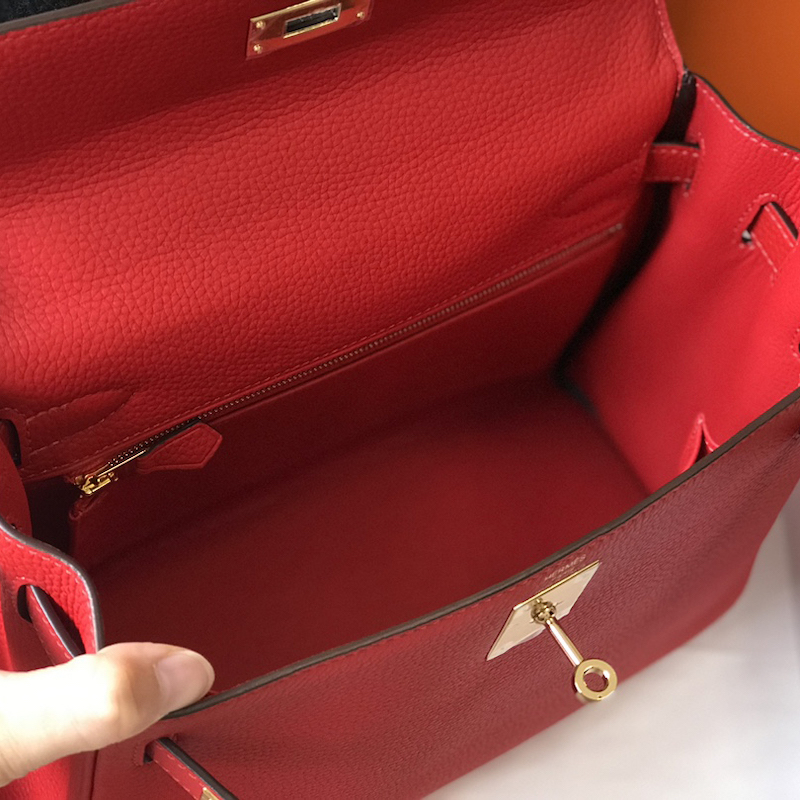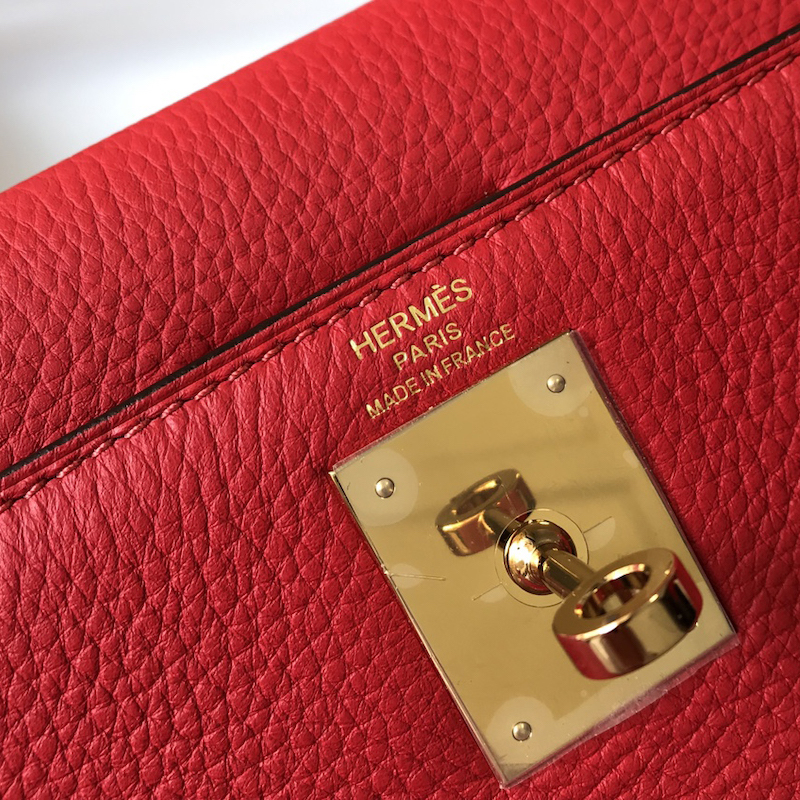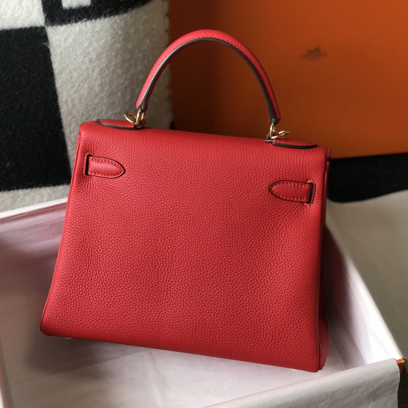 Reviews Over Hermes Kelly 32cm Bag in Clemence Leather Red