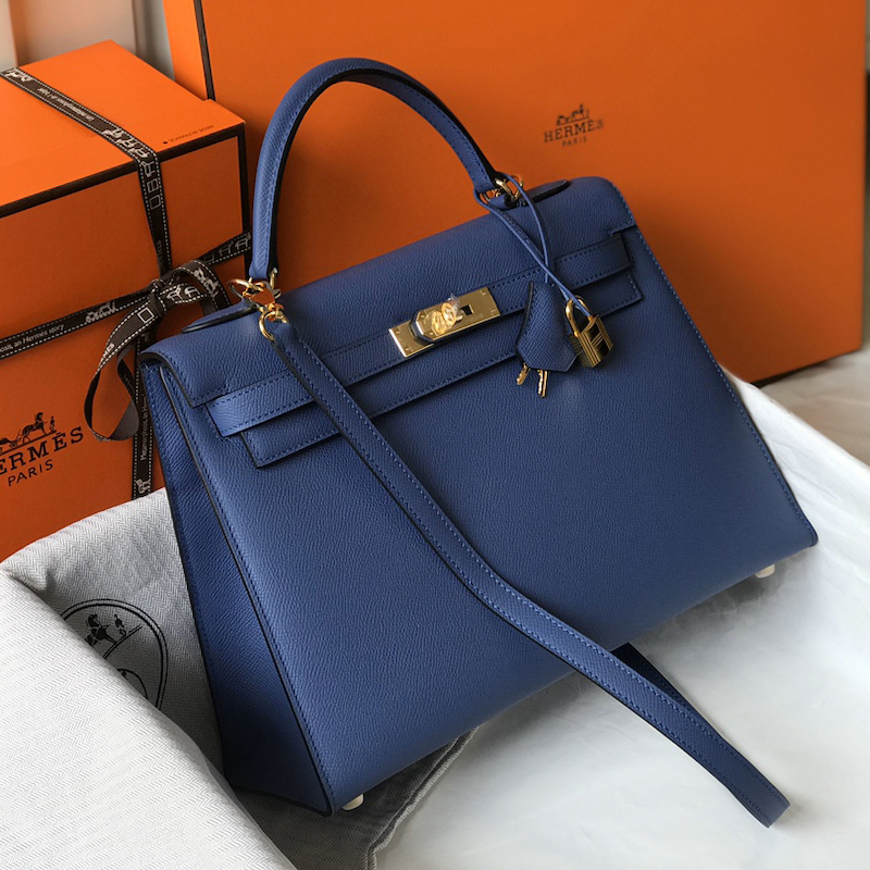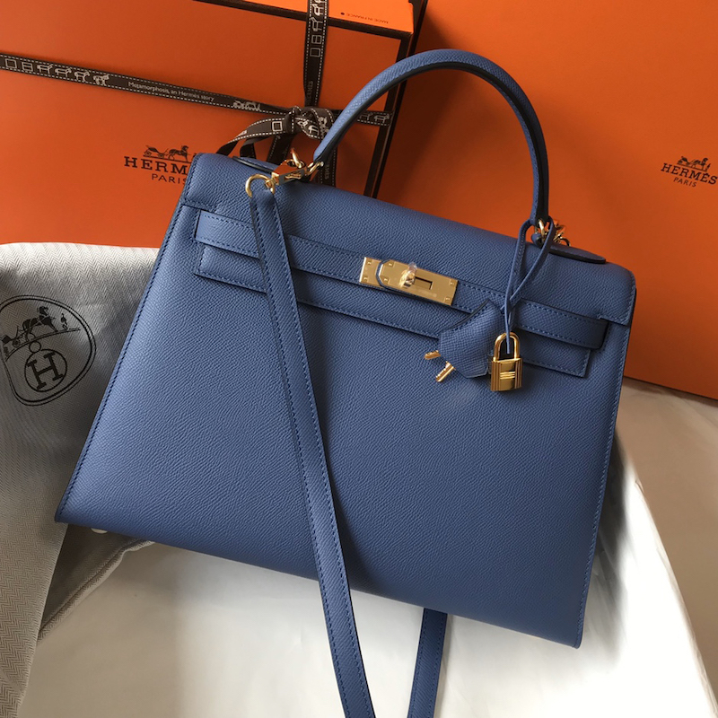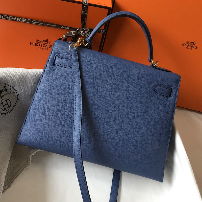 Reviews Over Hermes Kelly 32cm Bag in Epsom Leather Blue Jean