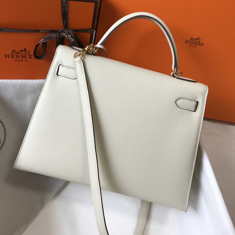 Reviews Over Hermes Kelly 32cm Bag in Epsom Leather White