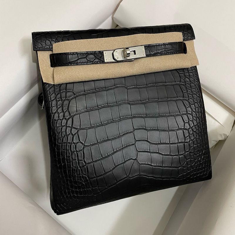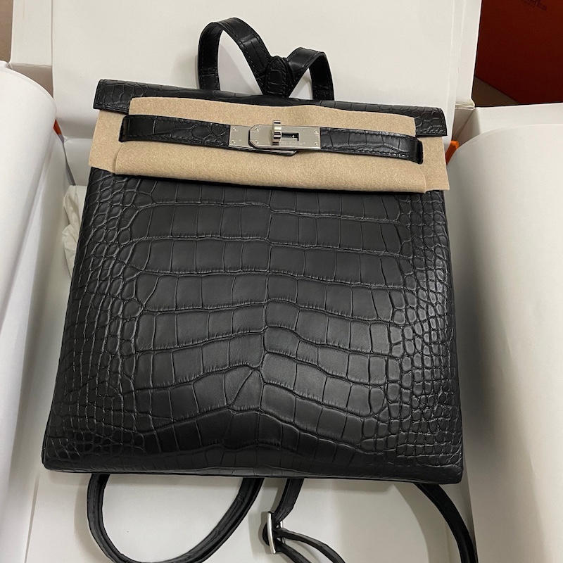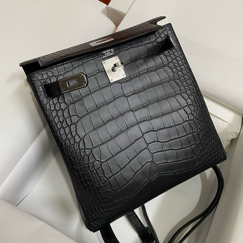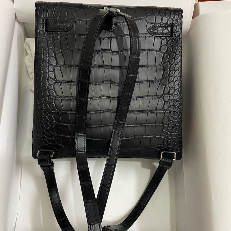 Reviews Over Hermes Kelly Ado Backpack In Black Matte Alligator Crocodile Leather