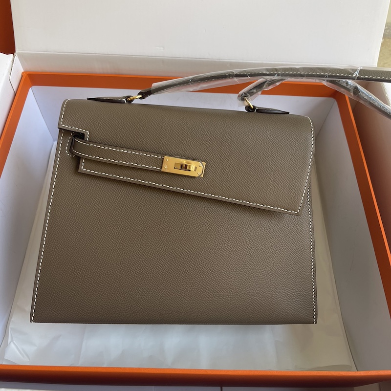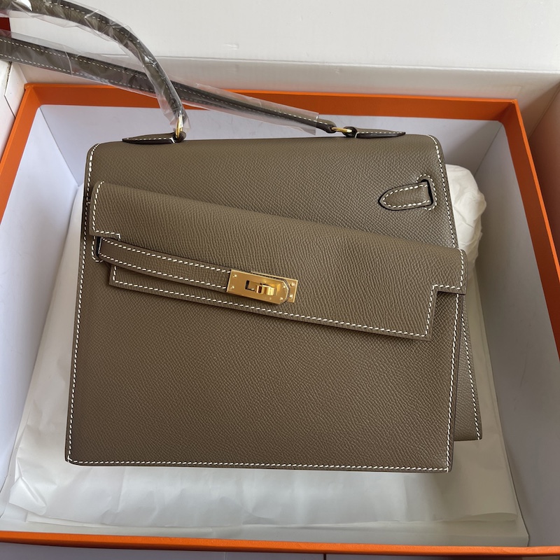 Reviews Over Hermes Kelly En Desordre 20 Bag in Etoupe Epsom Leather