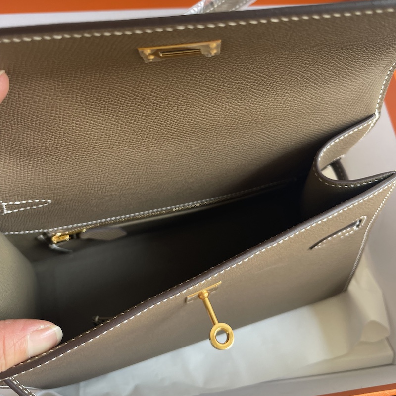 Hermes Kelly En Desordre 20 Bag in Etoupe Epsom Leather