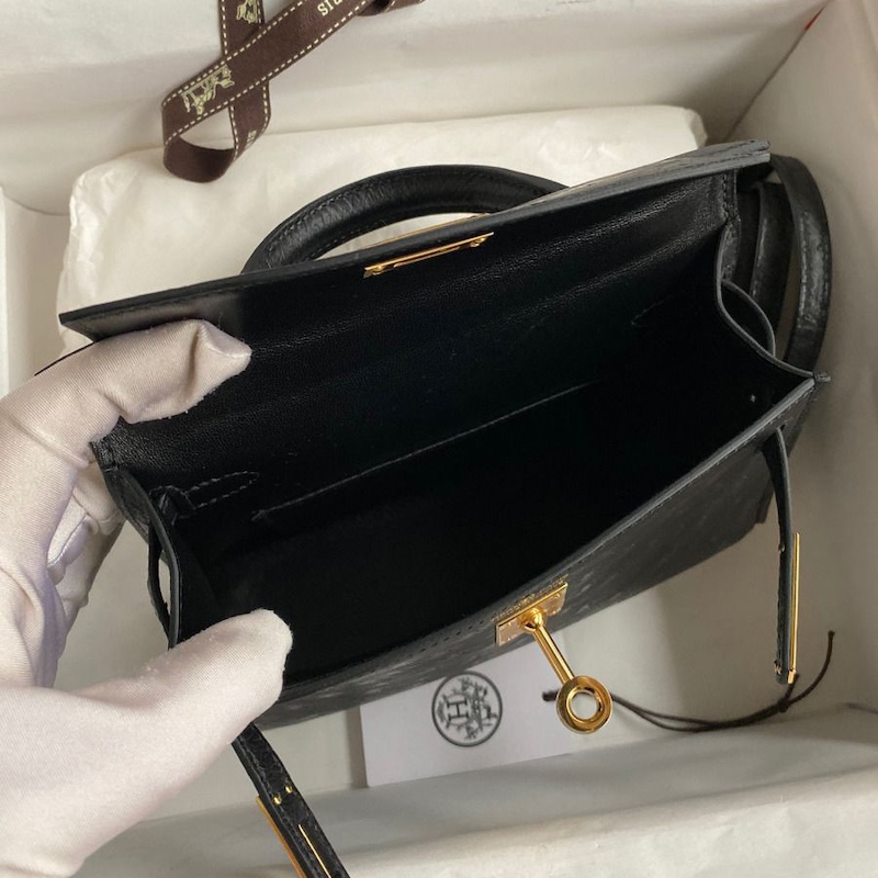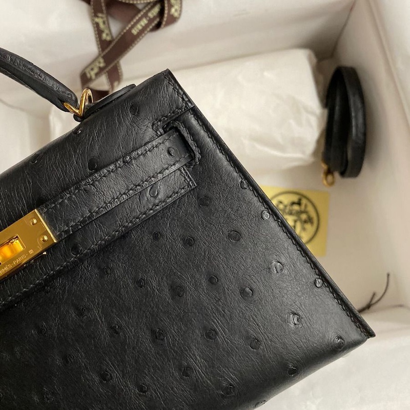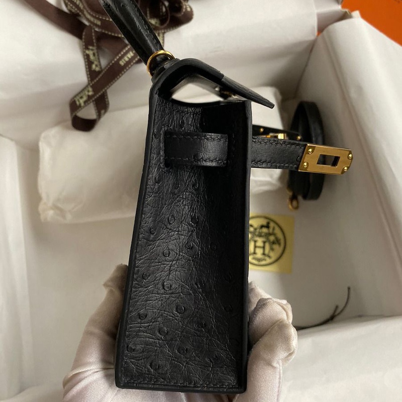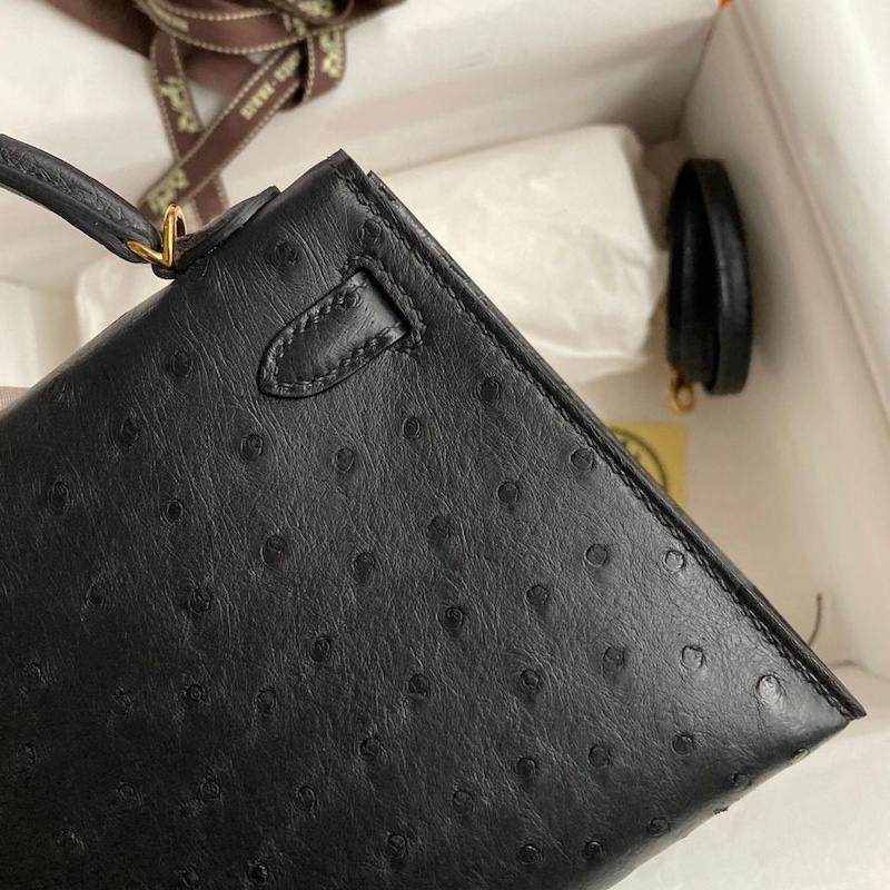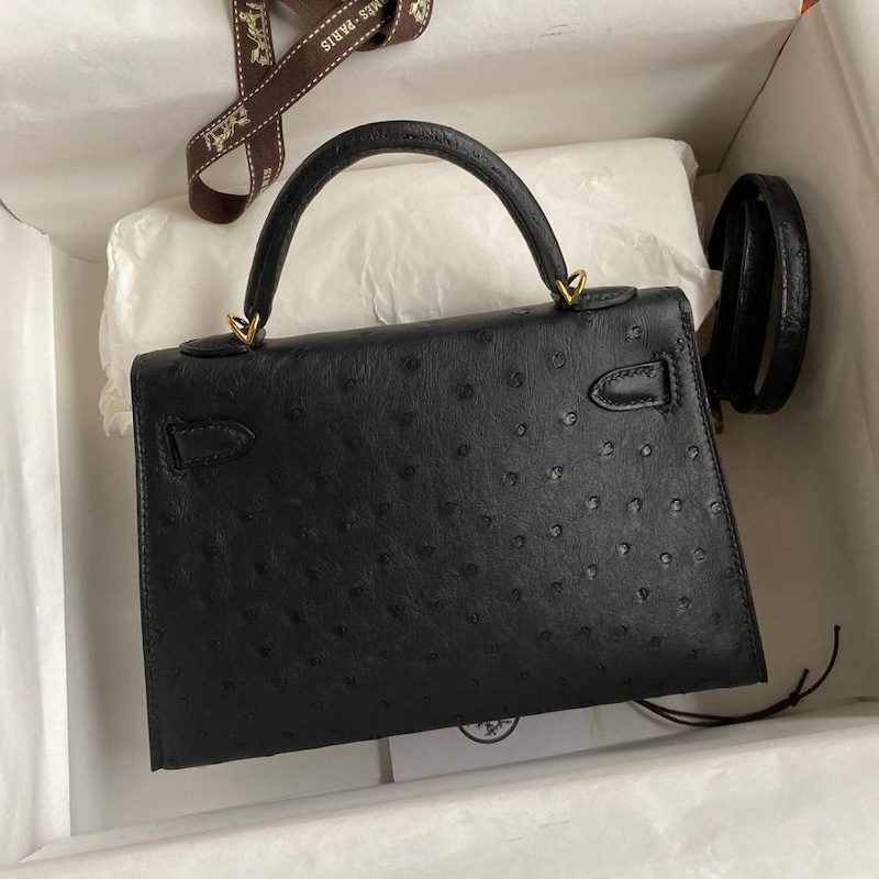 Reviews Over Hermes Kelly Mini II Bag 19cm in Black Ostrich Leather