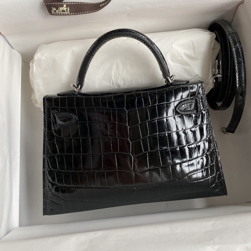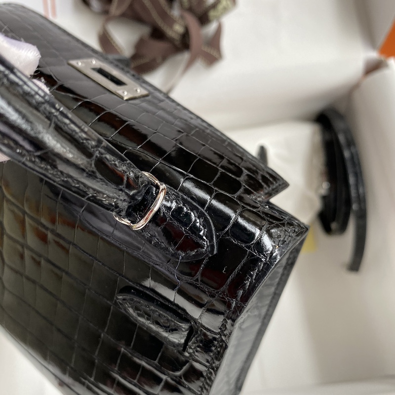 Reviews Over Hermes Kelly Mini II Bag 19cm in Black Shiny Alligator Leather