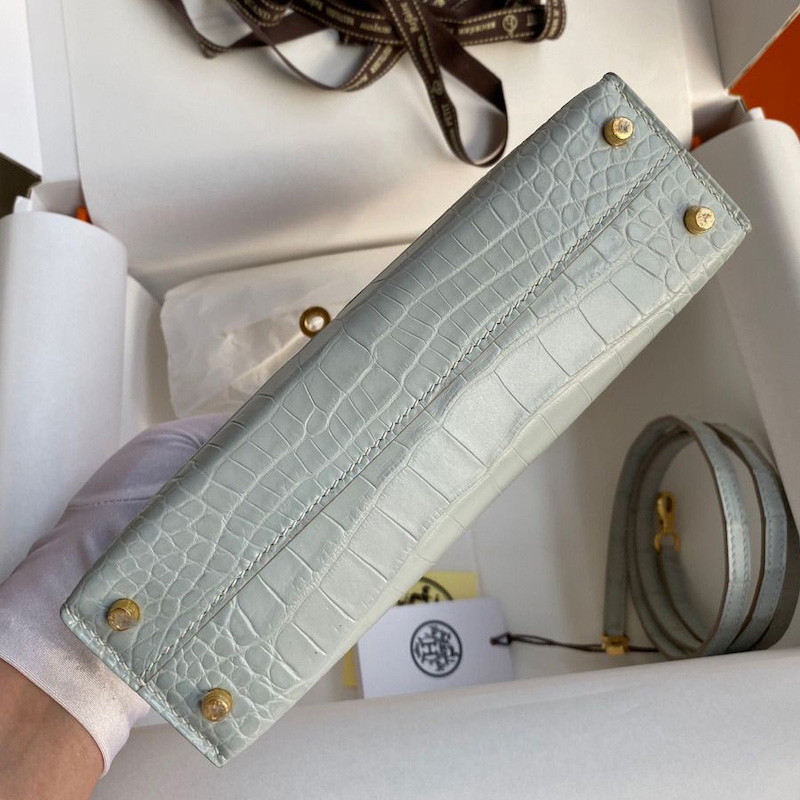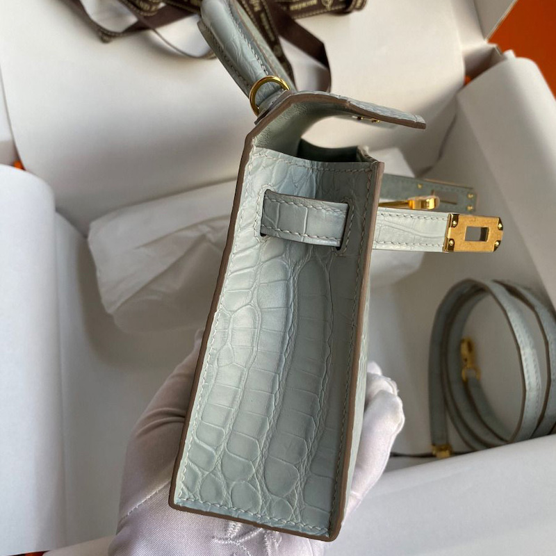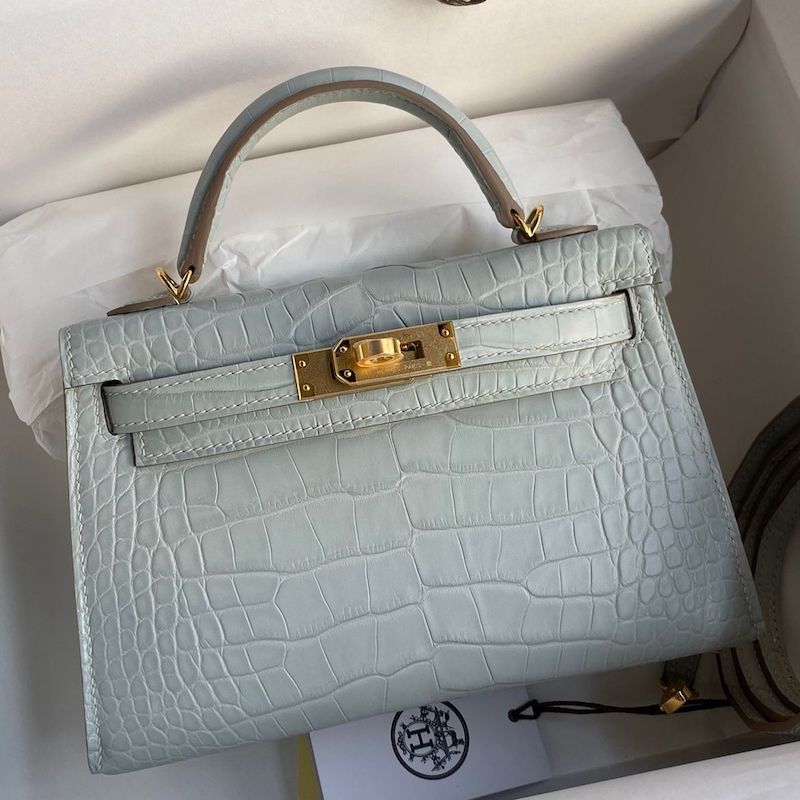 Reviews Over Hermes Kelly Mini II Bag 19cm in Bleu Glacier Matte Alligator Leather