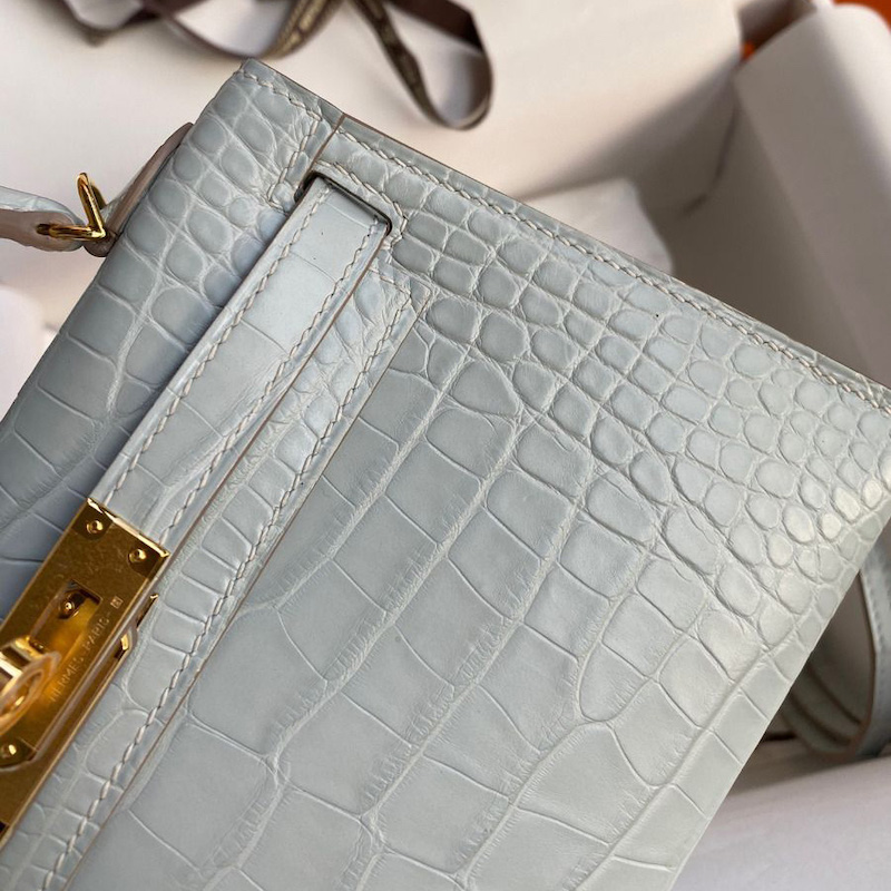 Hermes Kelly Mini II Bag 19cm in Bleu Glacier Matte Alligator Leather