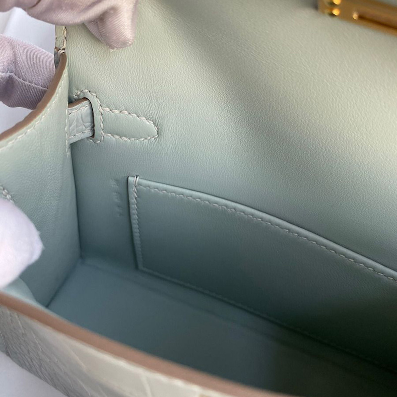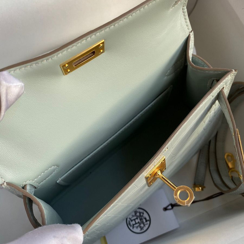 Hermes Kelly Mini II Bag 19cm in Vert D'eau Matte Alligator Leather