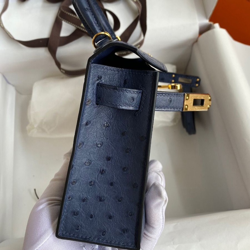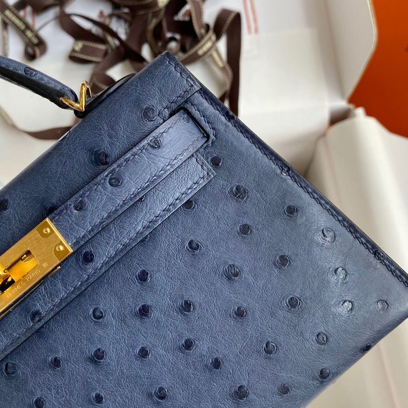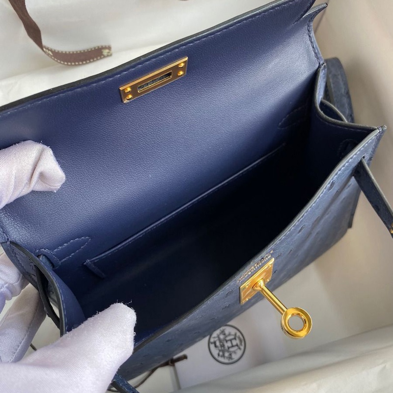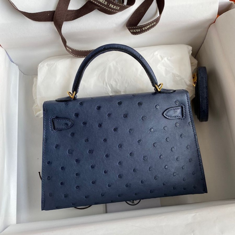 Reviews Over Hermes Kelly Mini II Bag 19cm in Blue Iris Ostrich Leather