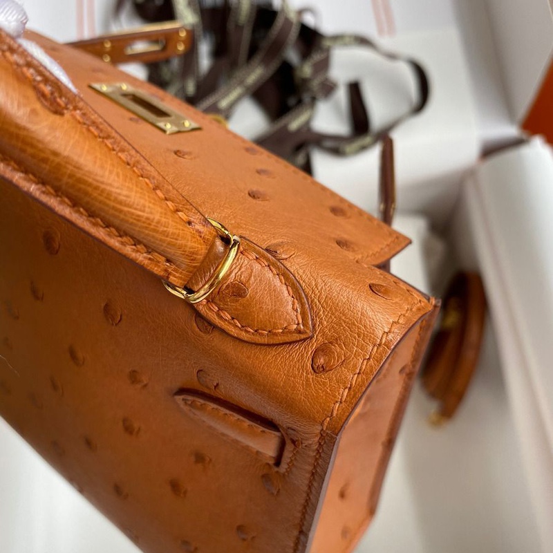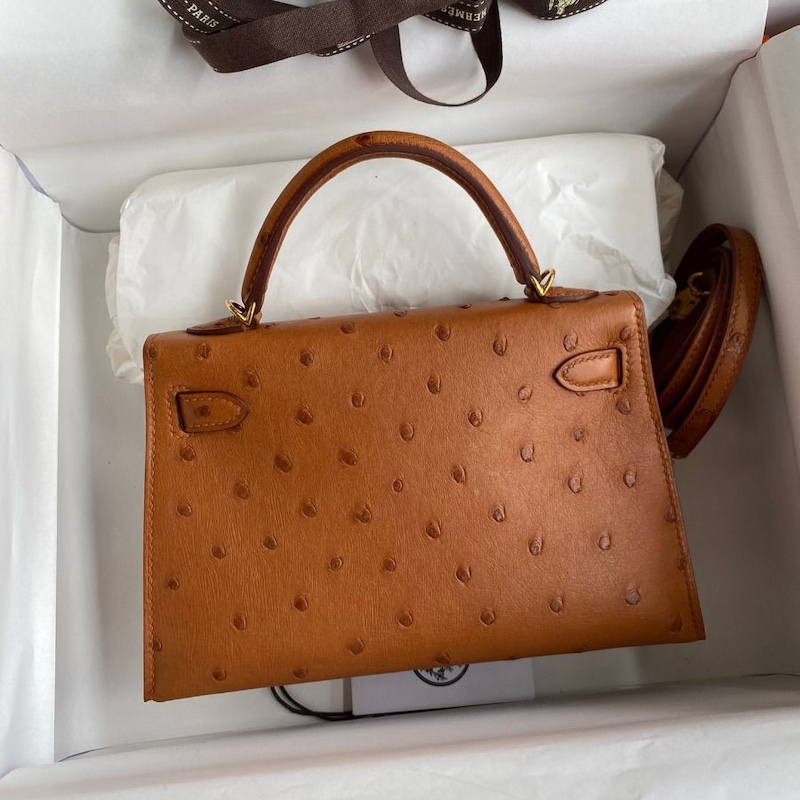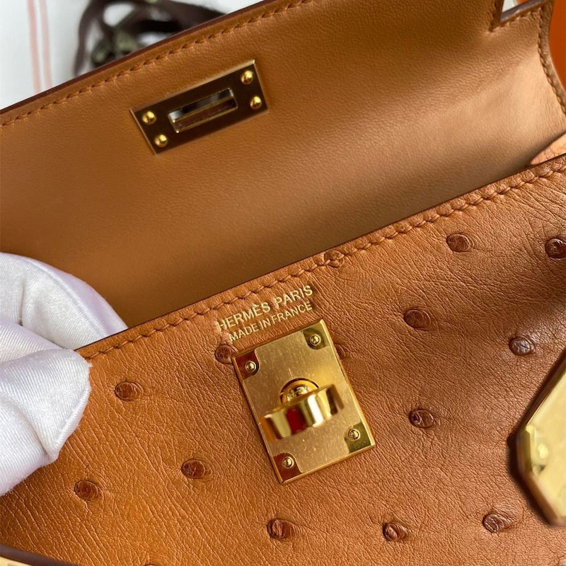 Reviews Over Hermes Kelly Mini II Bag 19cm in Gold Ostrich Leather