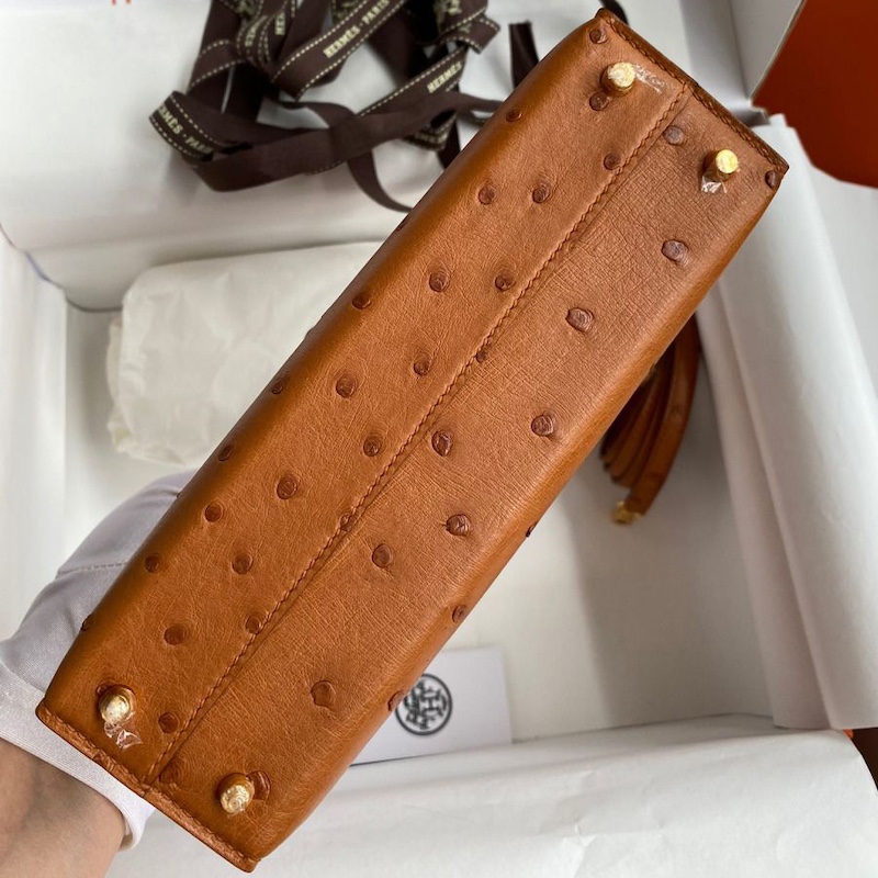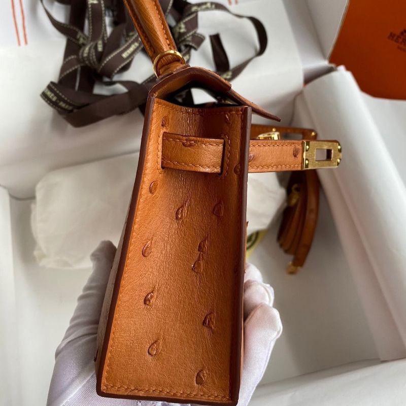 Hermes Kelly Mini II Bag 19cm in Gold Ostrich Leather