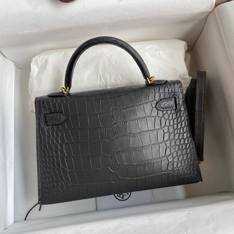 Reviews Over Hermes Kelly Mini II Bag 19cm in Graphite Matte Alligator Leather