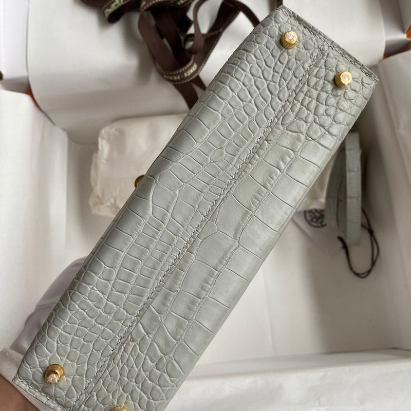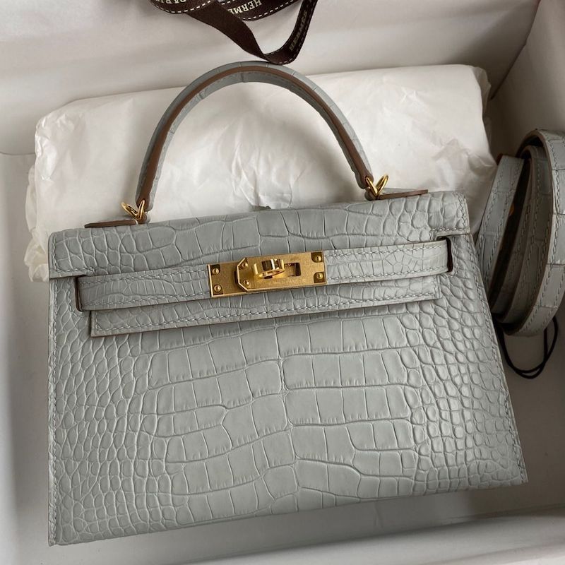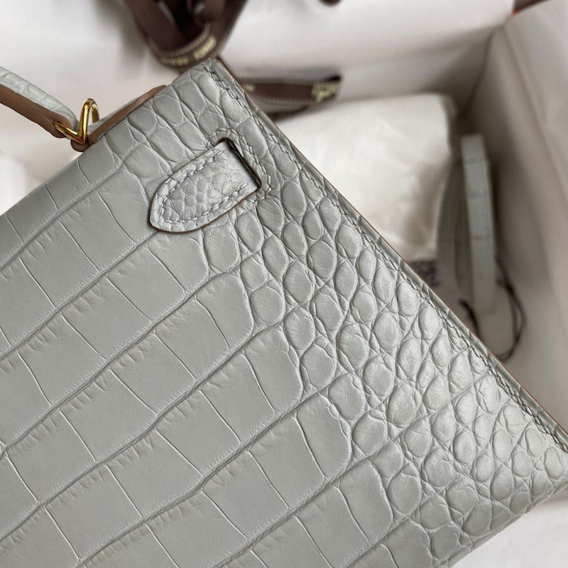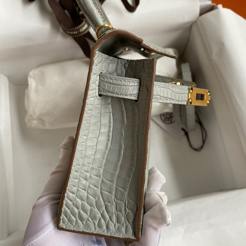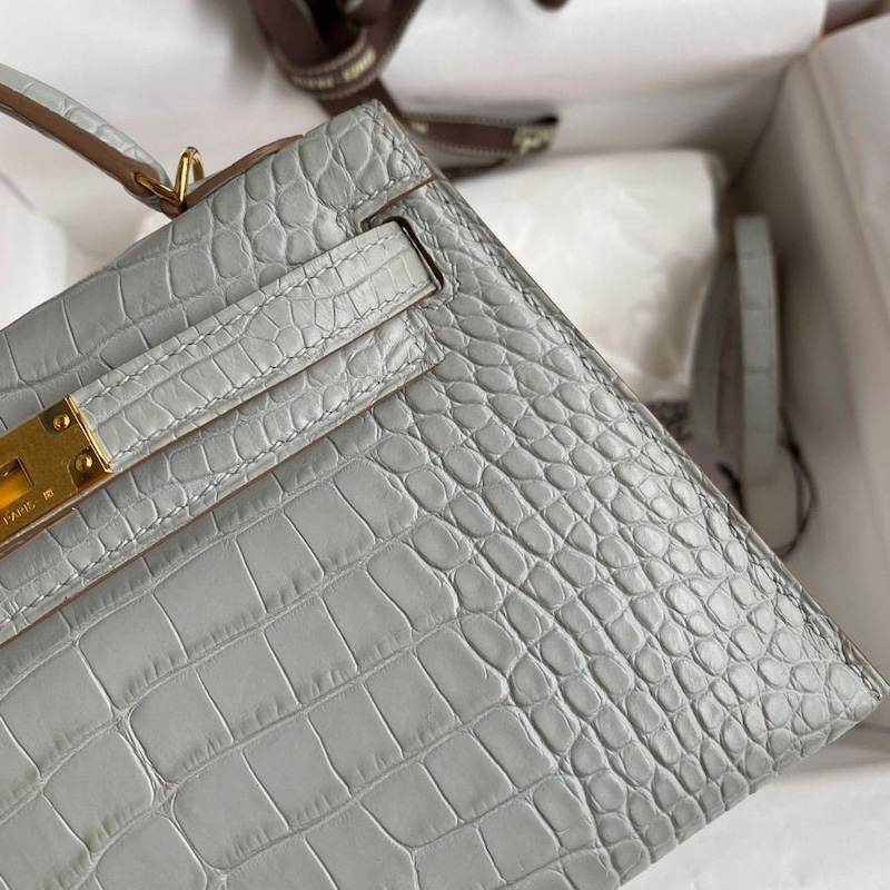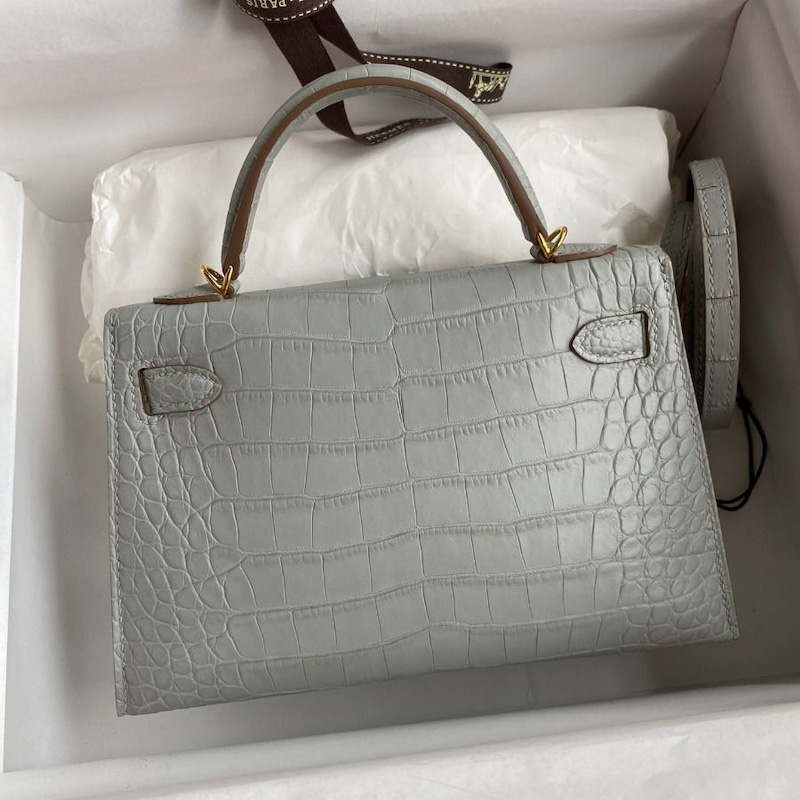Hermes Kelly Mini II Bag 19cm in Pearl Grey Matte Alligator Leather