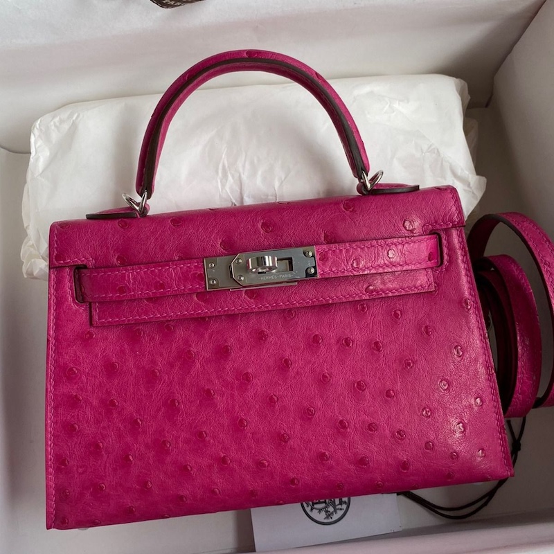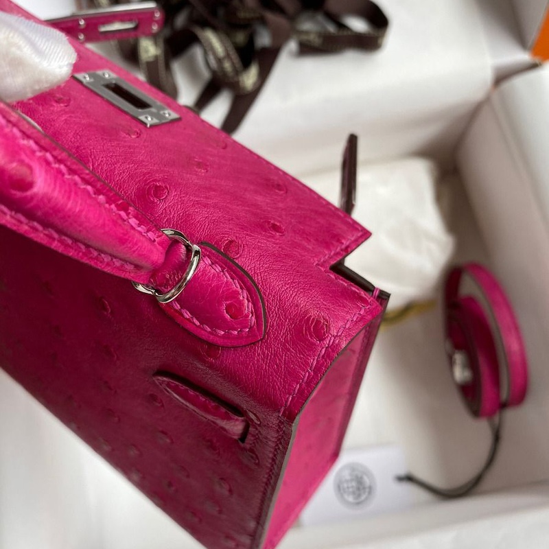 Reviews Over Hermes Kelly Mini II Bag 19cm in Rose Red Ostrich Leather