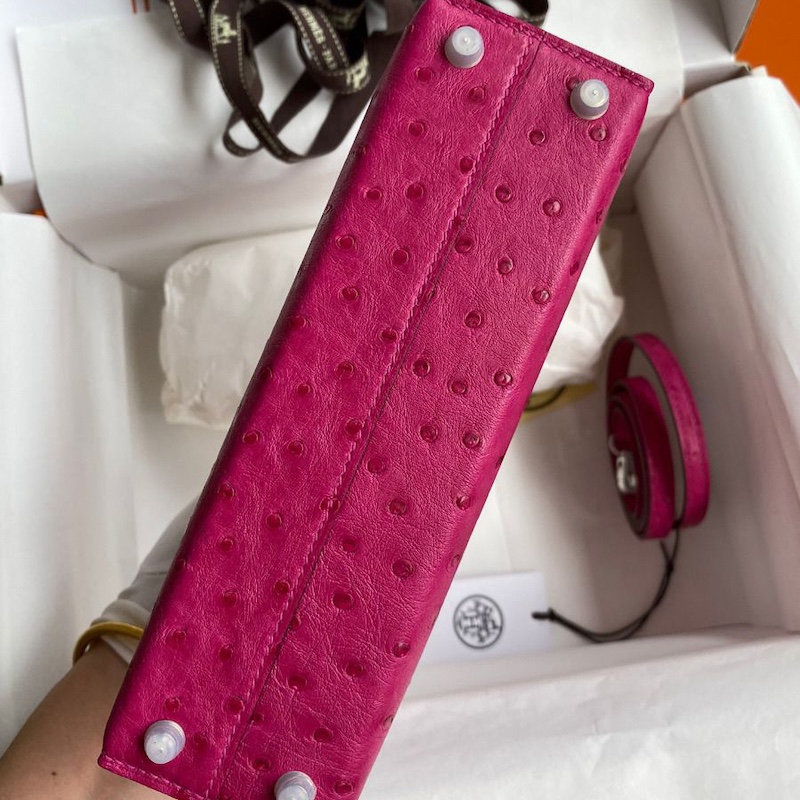 Hermes Kelly Mini II Bag 19cm in Rose Red Ostrich Leather
