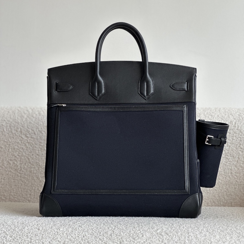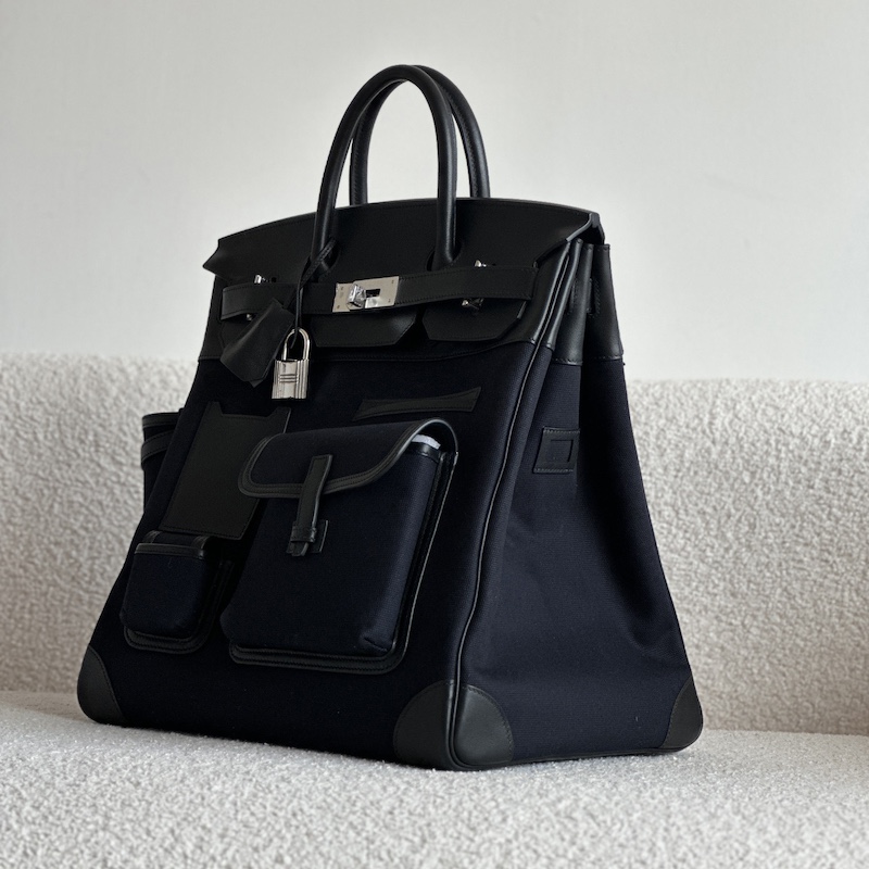 Reviews Over Hermes Limited Edition Black Box & Bleu Nuit Toile Cargo HAC Replica Handbag Store 40 PHW