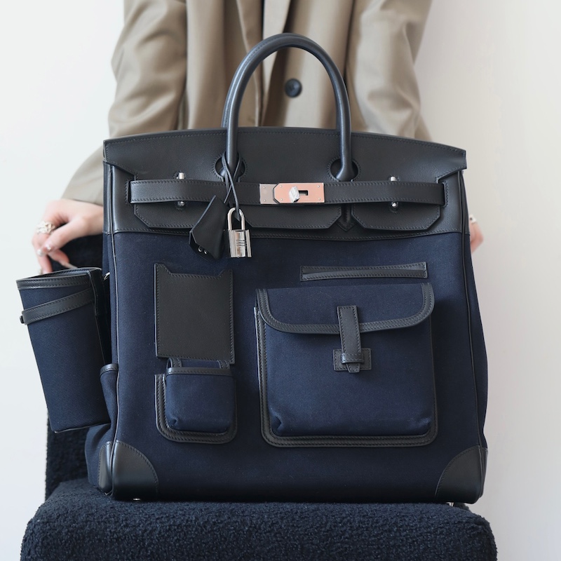 Hermès Limited Edition Black Box & Bleu Nuit Toile Cargo HAC Replica Handbag Store 40 PHW Palladium Hardware