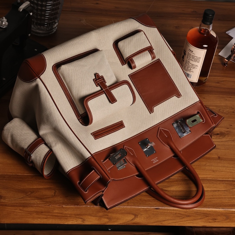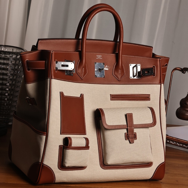Hermès Limited Edition Gold Box & Toile Geoland Cargo HAC Replica Handbag Store 40 Palladium Hardware