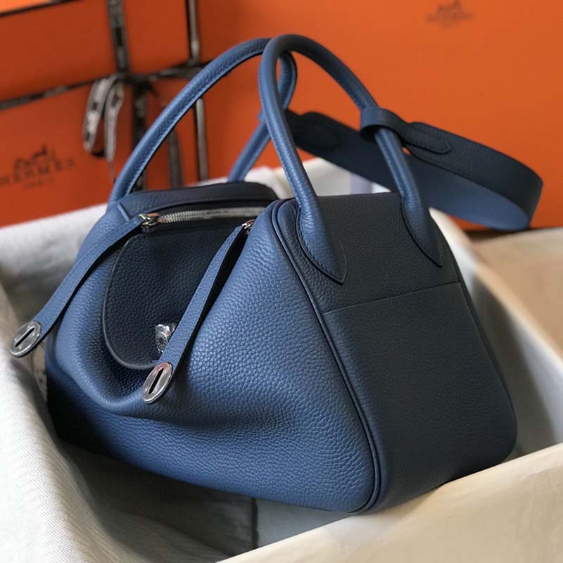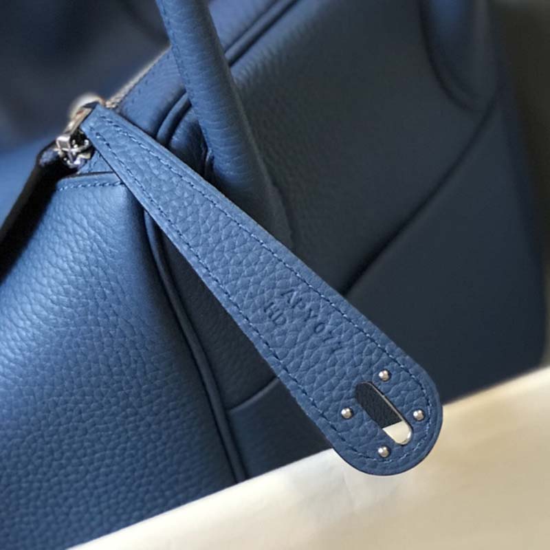 Reviews Over Hermes Lindy 26cm 30cm Bag in Clemence Leather Bleu Agate
