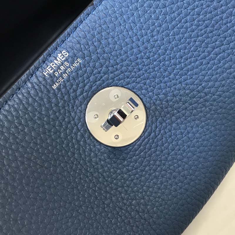 Hermes Lindy 26cm 30cm Bag in Clemence Leather Blue Jean GHW