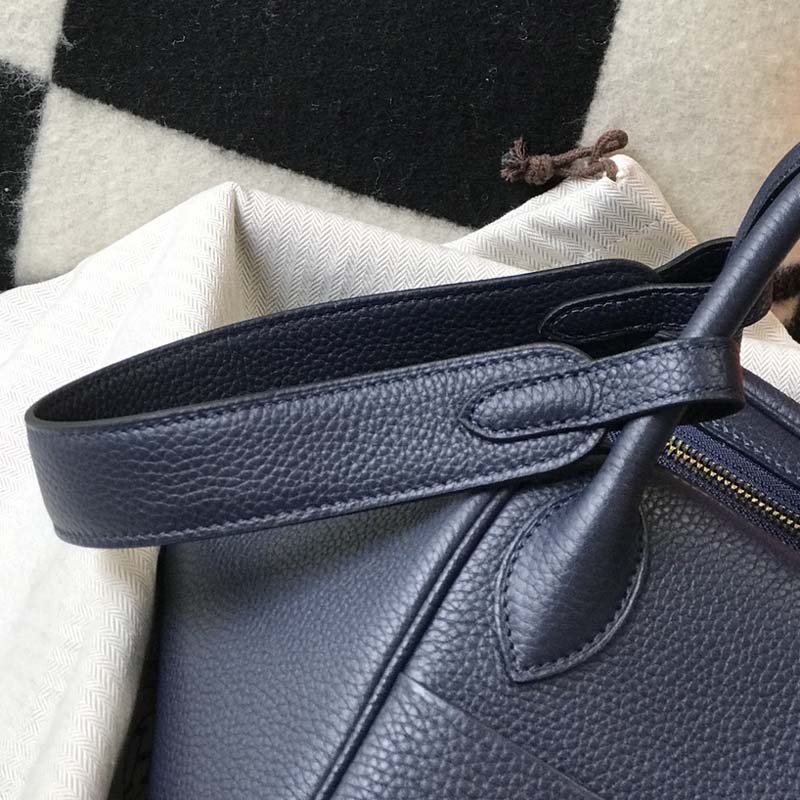 Hermes Lindy 26cm 30cm Bag in Clemence Leather Bleu Saphir