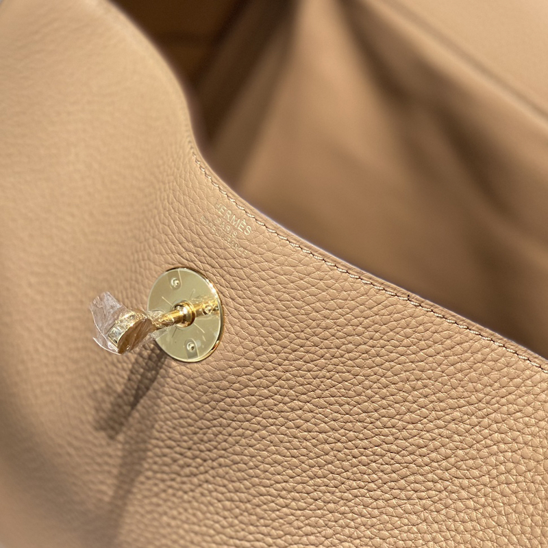 Hermes Lindy 26cm 30cm Bag in Clemence Leather Chai