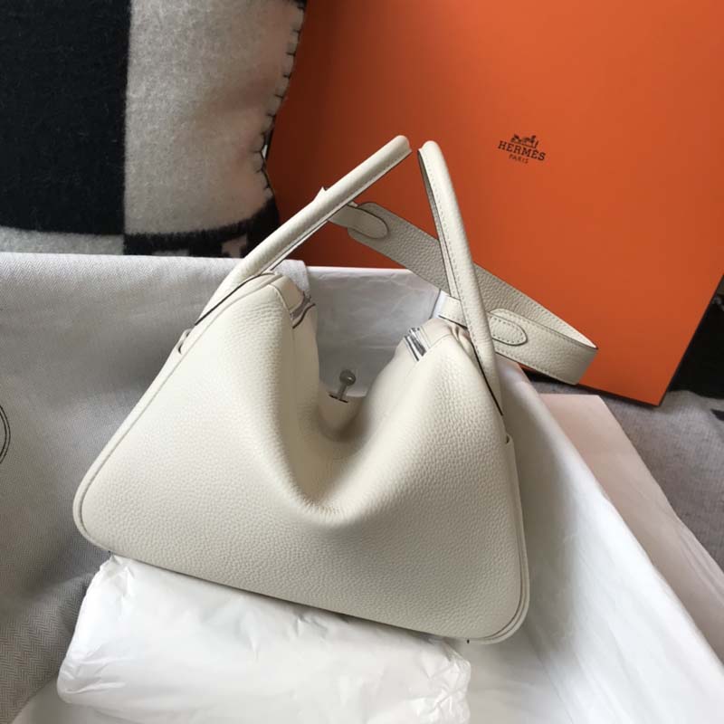 Reviews Over Hermes Lindy 26cm 30cm Bag in Clemence Leather Craie PHW