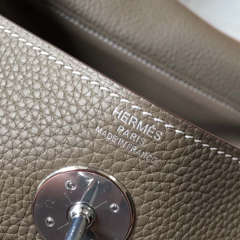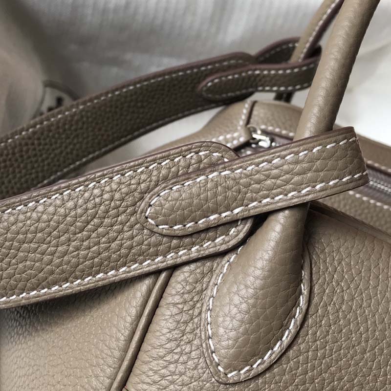 Hermes Lindy 26cm 30cm Bag in Clemence Leather Etoupe PHW