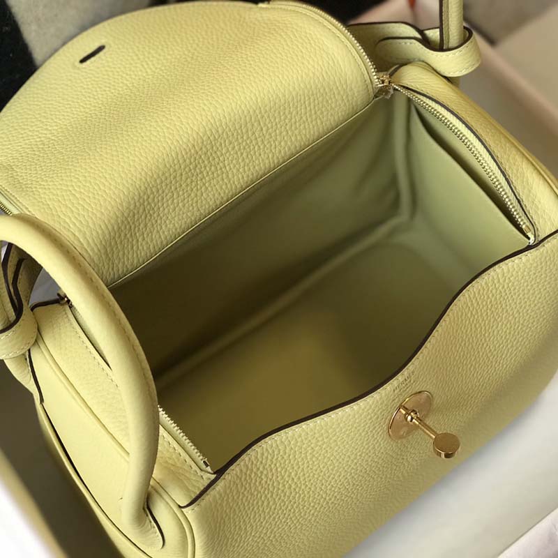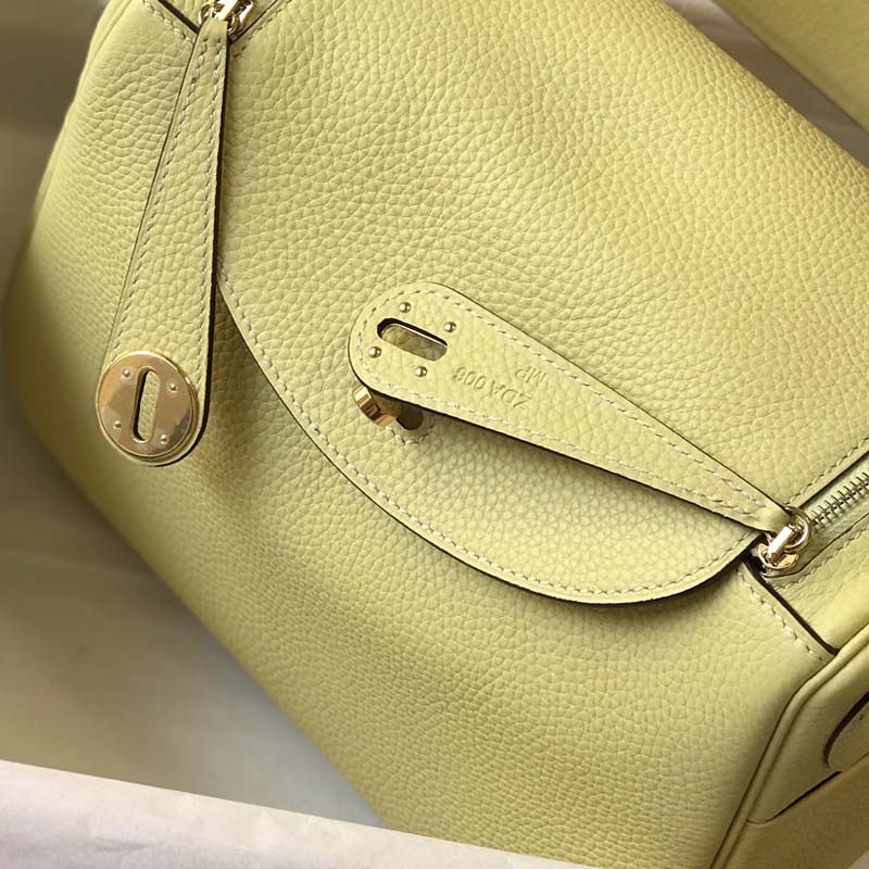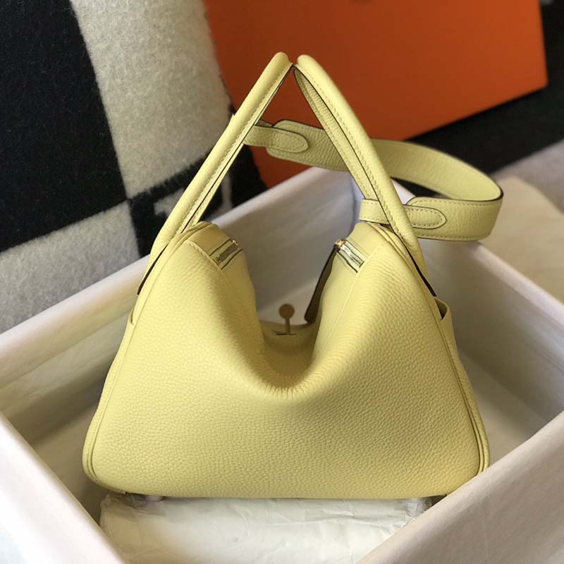 Reviews Over Hermes Lindy 26cm 30cm Bag in Clemence Leather Jaune Poussin