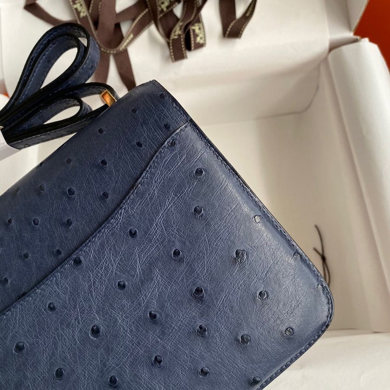 Hermes Constance 18 Handmade Bag In Blue Iris Ostrich Leather