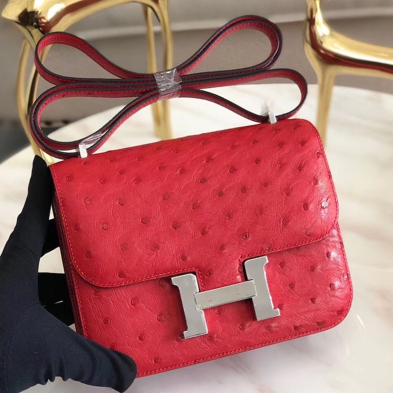 Replica Hermes Ostrich Constance 18 Bag comes with Hermes dust bag and certificate card etc.
