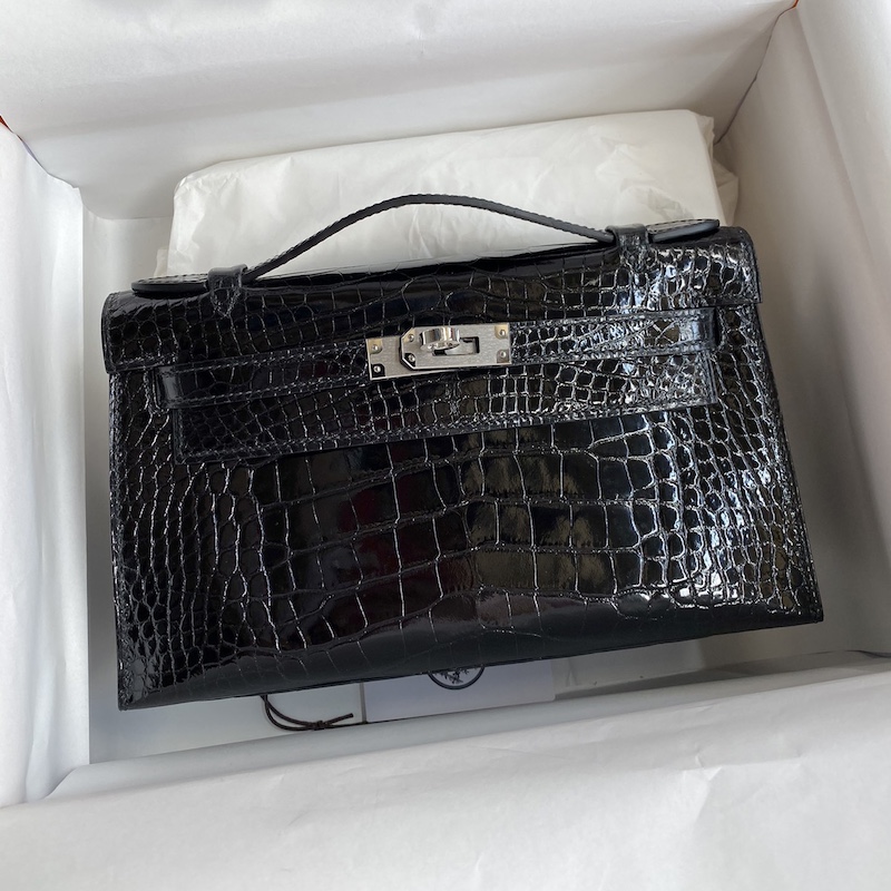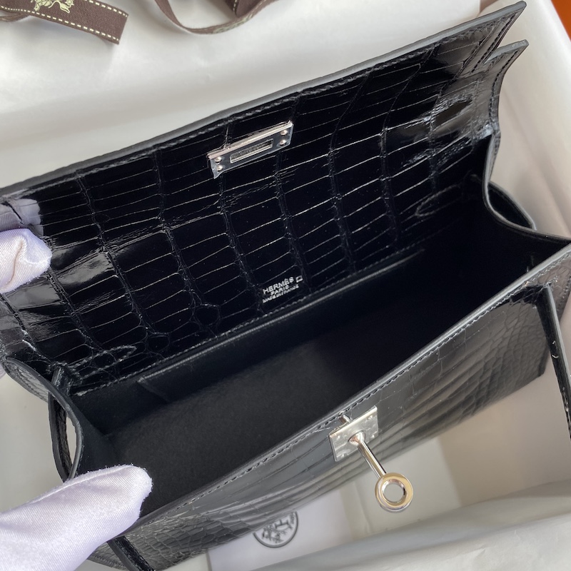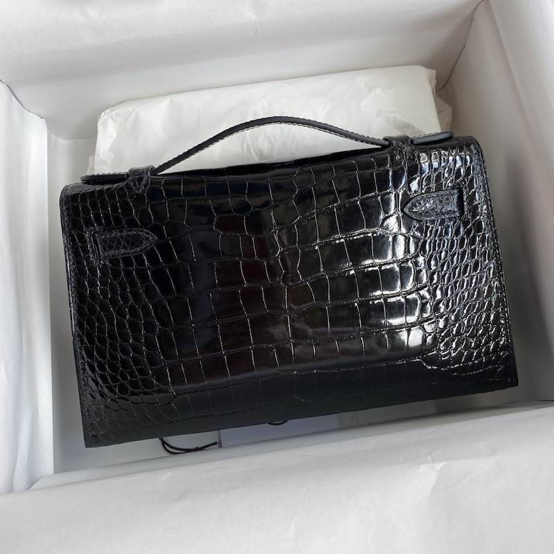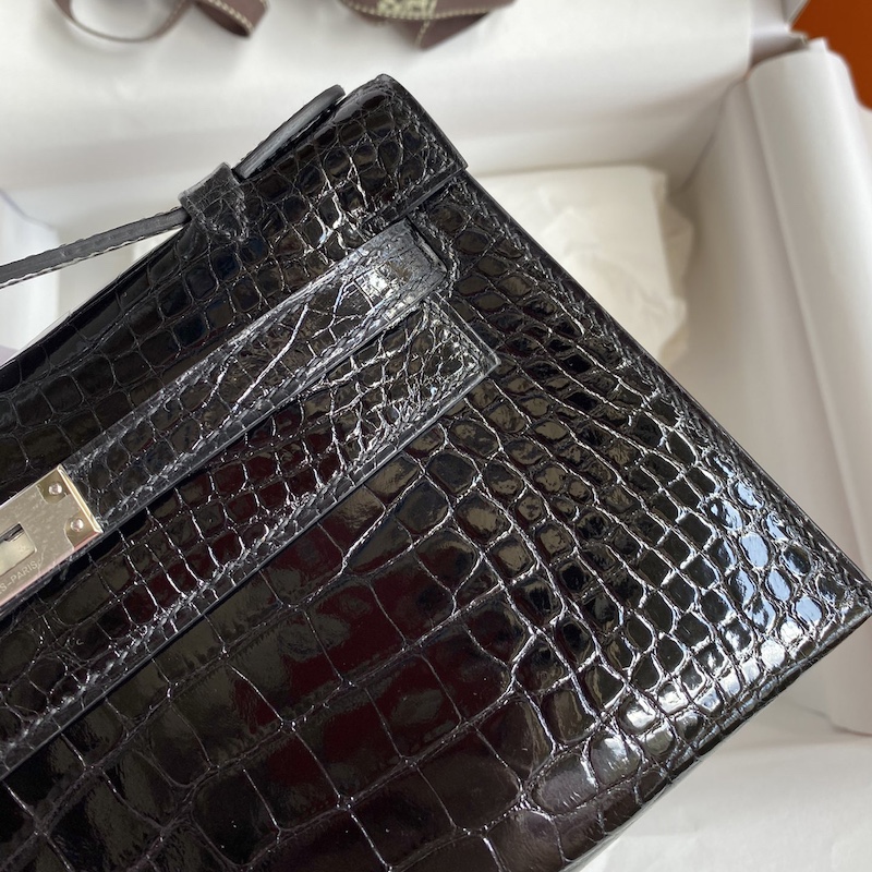 Reviews Over Hermes Mini Kelly Pochette 22cm Bag In Black Shiny Alligator Leather
