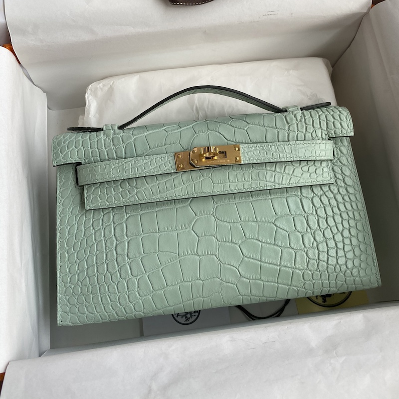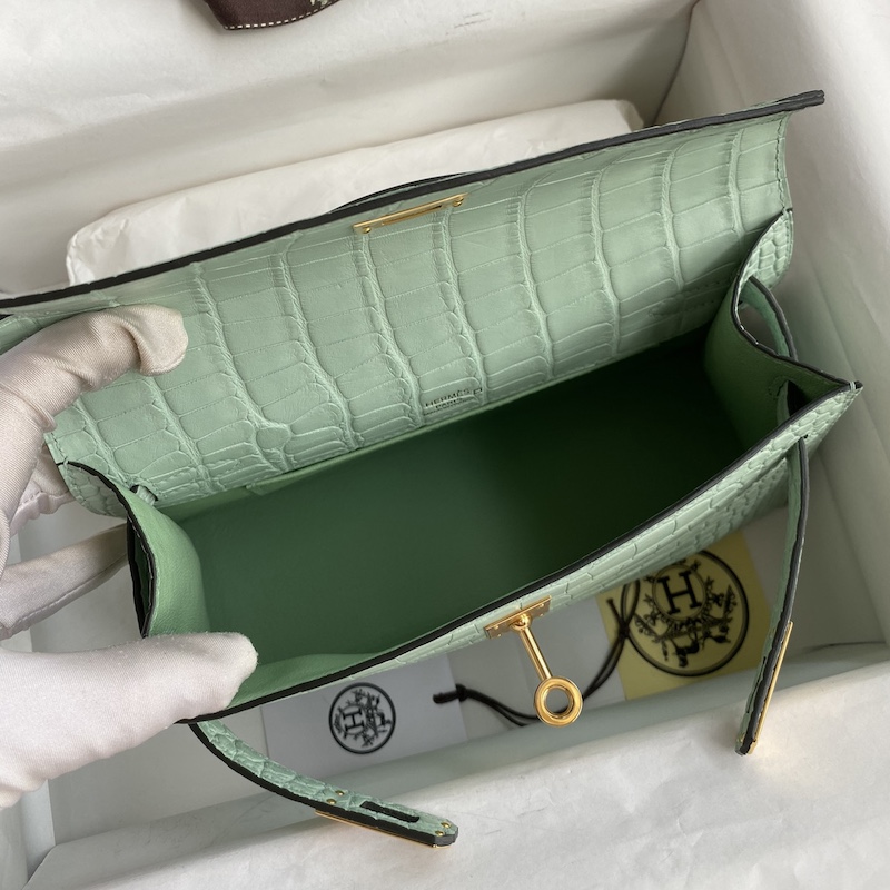 Reviews Over Hermes Mini Kelly Pochette 22cm Bag In Menthe Matte Alligator Leather