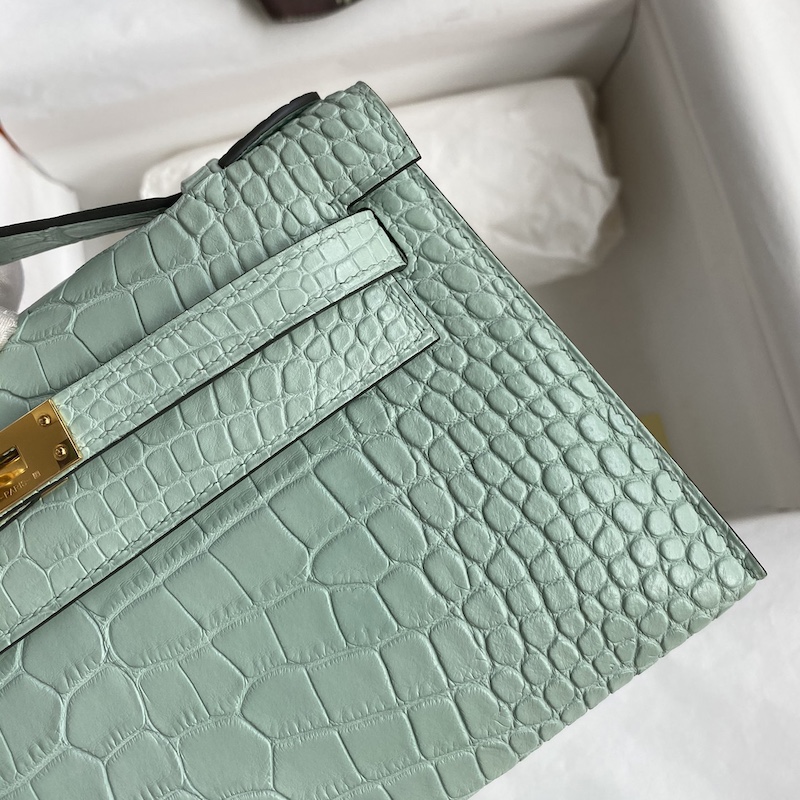 Hermes Mini Kelly Pochette 22cm Bag In Menthe Matte Alligator Leather