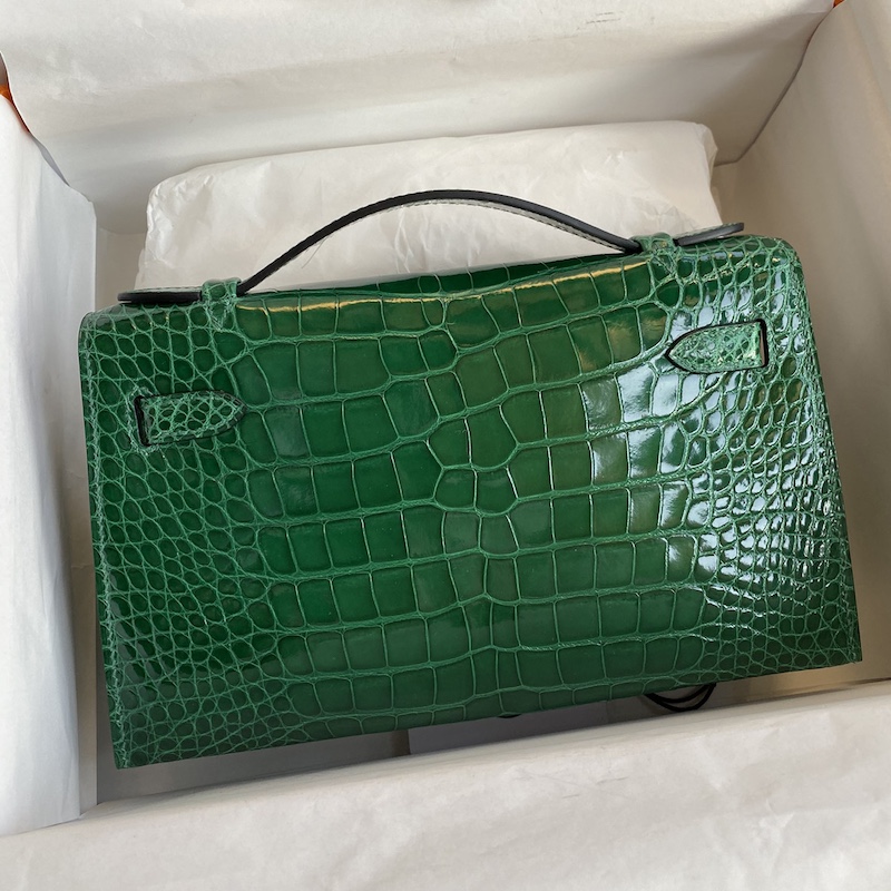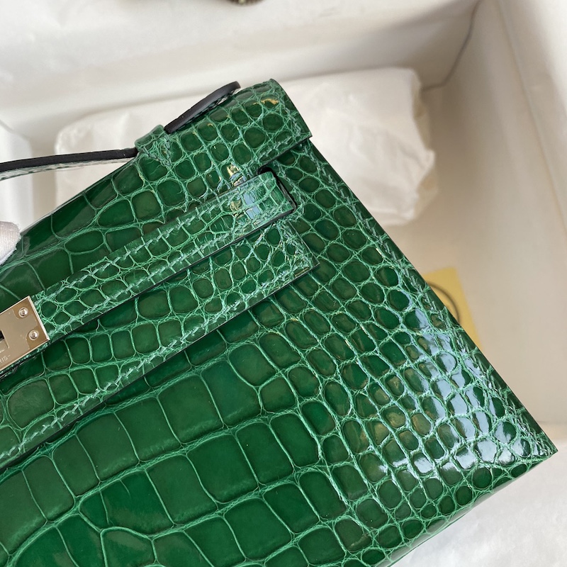 Reviews Over Hermes Mini Kelly Pochette 22cm Bag In Vert Cactus Shiny Alligator Leather