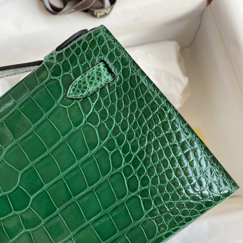 Hermes Mini Kelly Pochette 22cm Bag In Vert Cactus Shiny Alligator Leather