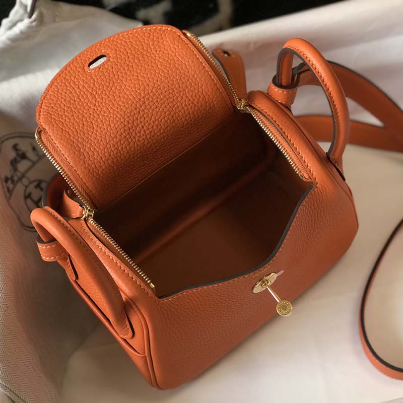 Hermes Mini Lindy Bag 19cm in Clemence Leather Orange