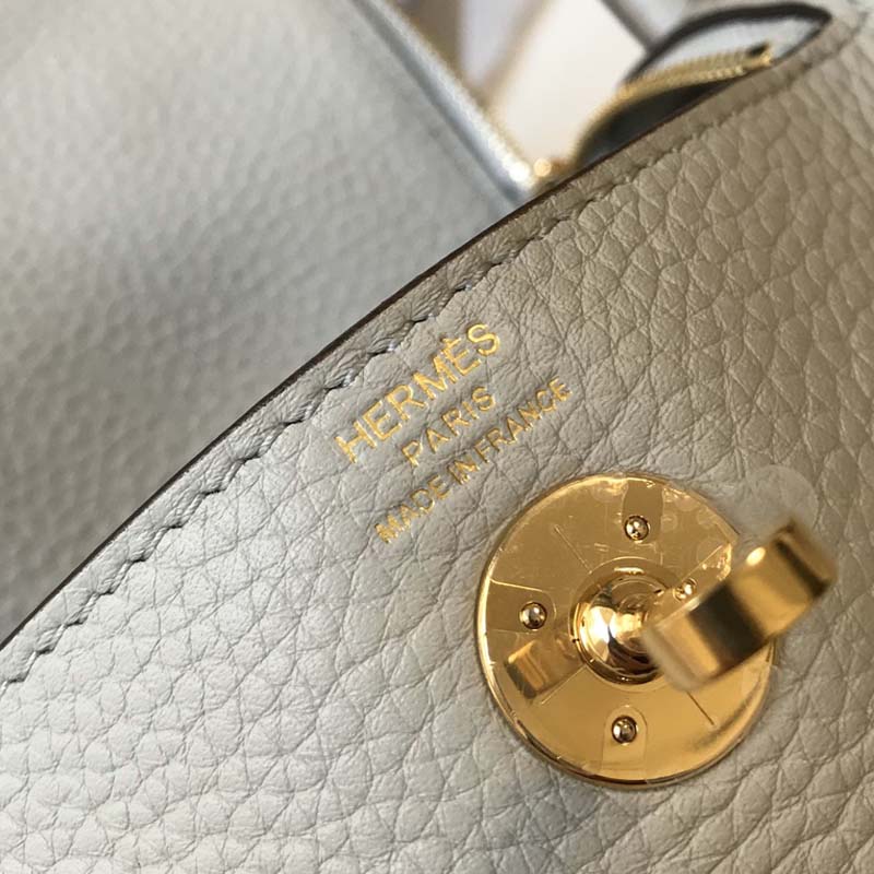 Hermes Mini Lindy Bag 19cm in Clemence Leather Pearl Gray