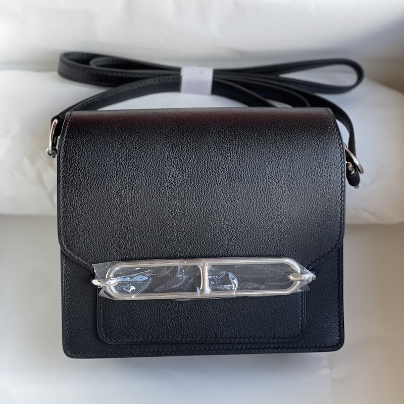 Reviews Over Hermes Mini Roulis 18cm Bag In Black Evercolor Leather PHW