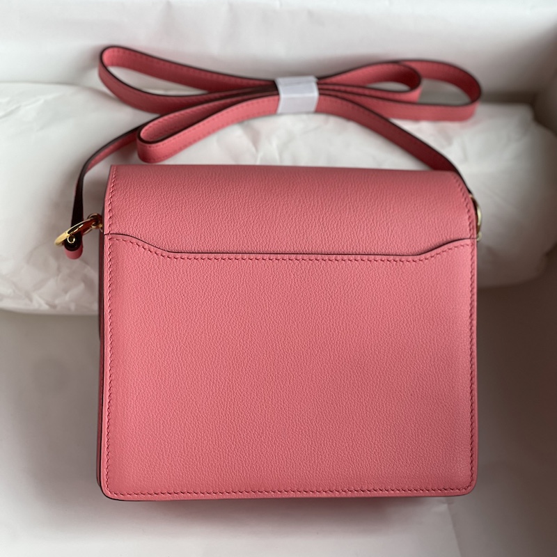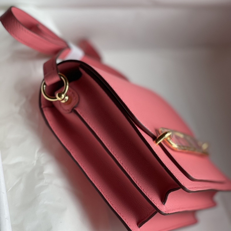 Hermes Mini Roulis 18cm Bag In Pink Evercolor Leather GHW