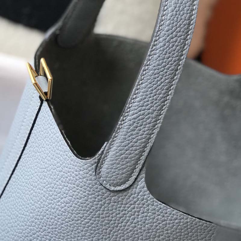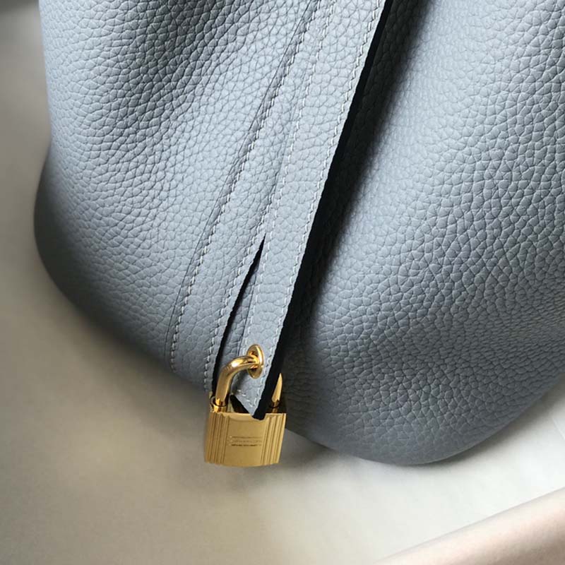 Hermes Picotin Lock Bag named in tribute to the daughter of the designer who introduced it into the collectsions, this leather was developed for luggage and is the ultimate example of a grained leather that has been drummed. This process softens the skin and brings a generous grain to the surface.