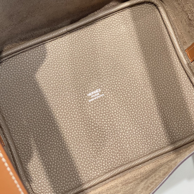 Hermes Picotin Lock 22 Bag named in tribute to the daughter of the designer who introduced it into the collectsions, this leather was developed for luggage and is the ultimate example of a grained leather that has been drummed. This process softens the skin and brings a generous grain to the surface.