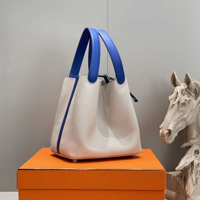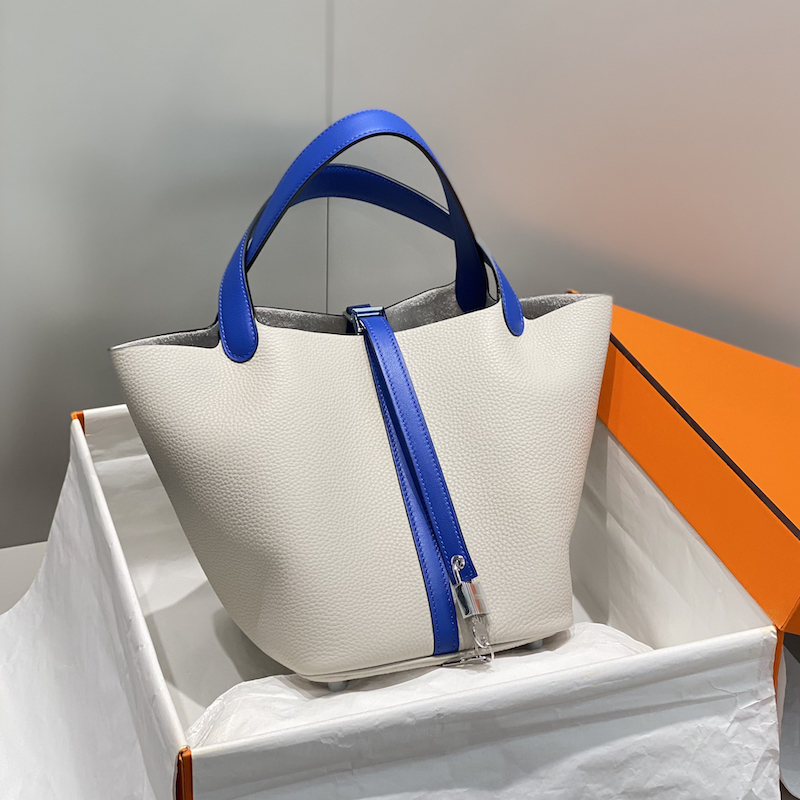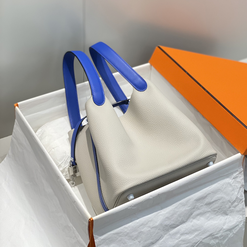 Hermes Picotin Lock 22 Bag Pearl Gray / Blue Electric