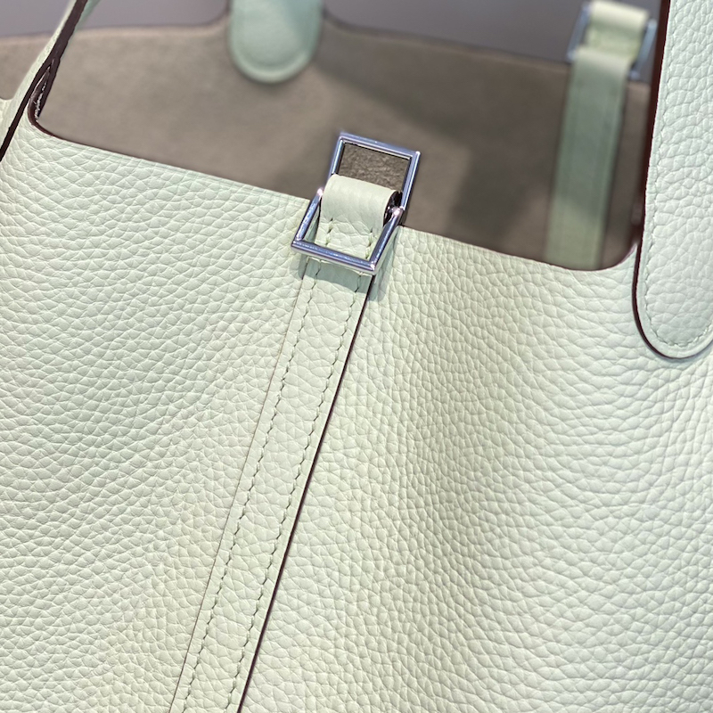 Hermes Picotin Lock Bag named in tribute to the daughter of the designer who introduced it into the collectsions, this leather was developed for luggage and is the ultimate example of a grained leather that has been drummed. This process softens the skin and brings a generous grain to the surface.