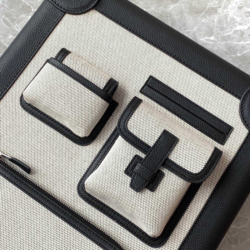 What material is this Suitcase made from?Made with Hermes Cabin suitcase in H canvas and taurillon Regate leather