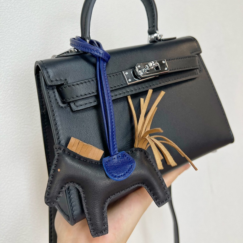 Reviews Over Hermes Rodeo Horse PM Bag Charm in Black / Blue Electric Leather