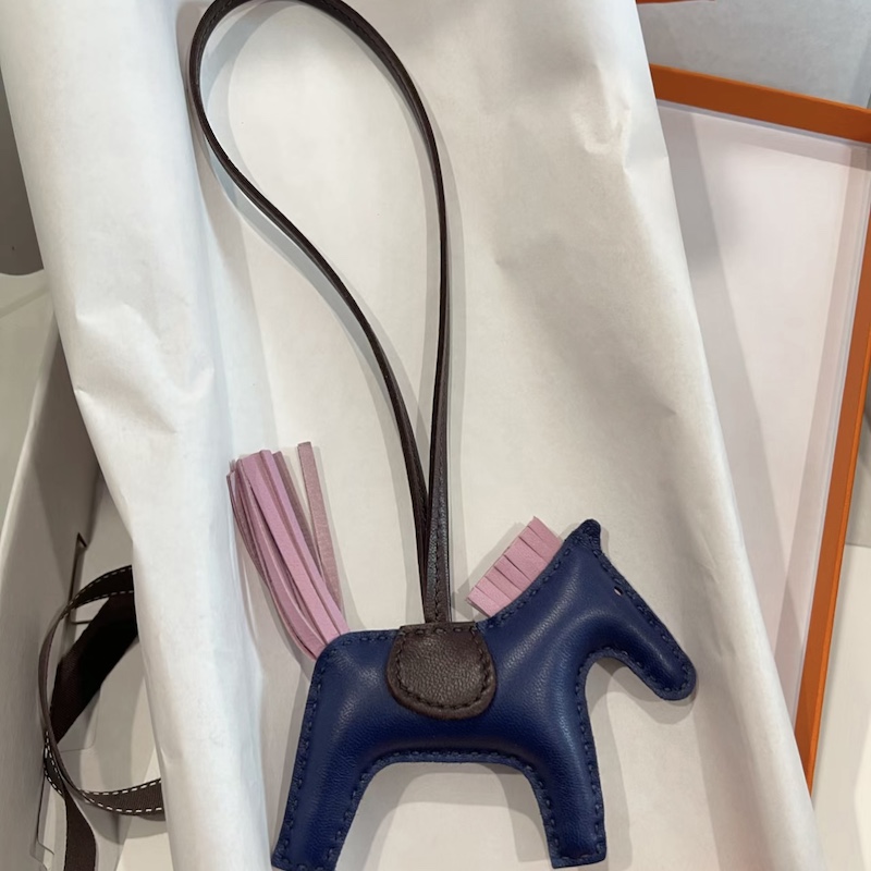 Reviews Over Hermes Rodeo Horse PM Bag Charm in Bleu Saphir / Mauve sylvestre Leather